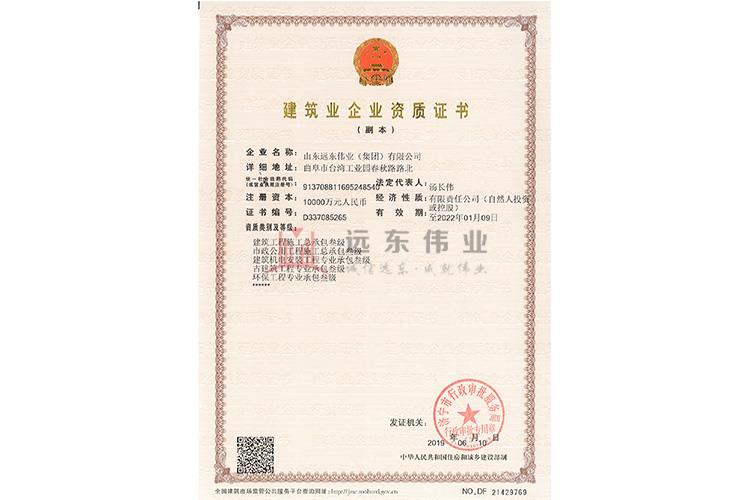 建筑工程施工總承包叁級 市政公用工程施工總承包叁級 建筑機電安裝工程專業(yè)承包叁級 古建筑工程專業(yè)承包叁級 環(huán)保工程專業(yè)承包叁級 2023-09-13 09:19:23 上一條:門窗備案證明 下一條: 建筑門窗行業(yè)資格證書 相關(guān)資訊 夯實基礎·砥礪奮進 | 重慶龍... 正在施工的和新承接的項目情... 近年完成的類似項目情況表... 關(guān)于加強項目部農(nóng)民工工資支... 熱門推薦 黃海明珠中心 濟寧運河城 開發(fā)區(qū)萬達廣場 中國重汽濟寧商用車有限公司